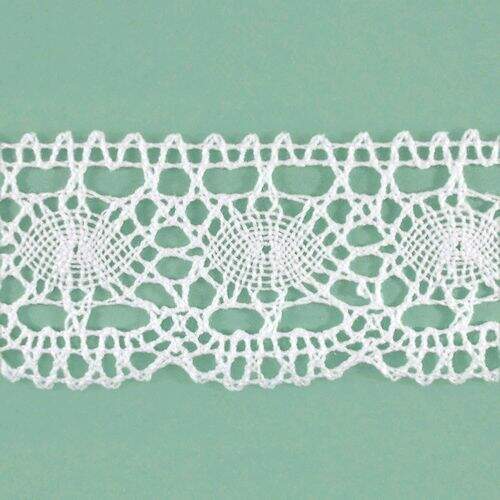Renda em algodão, utilizada para artesanato, confecções, decoração e outros. Aceita tingimento.