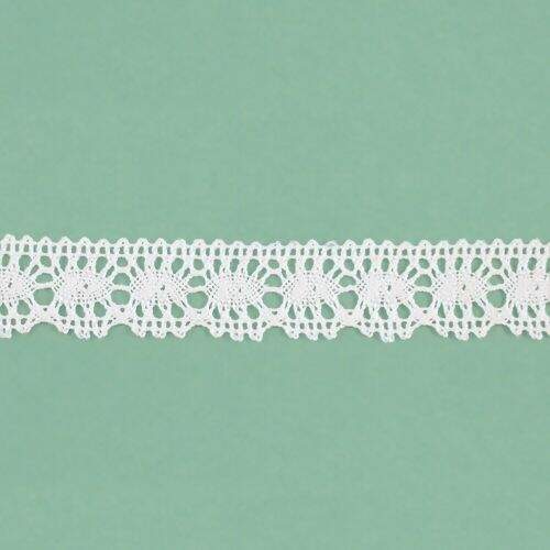 Renda em algodão, utilizada para artesanato, confecções, decoração e outros. Aceita tingimento.