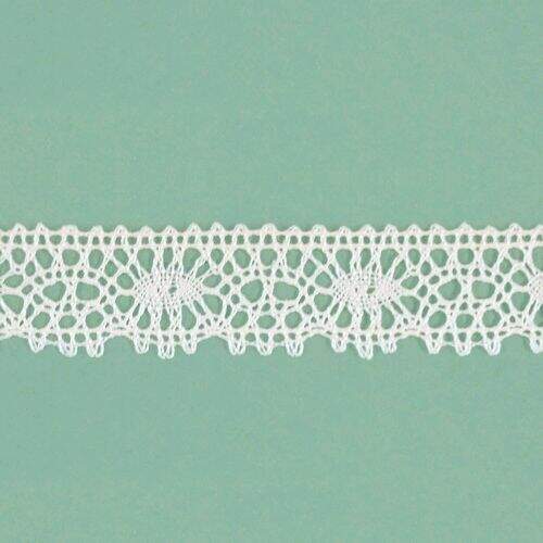 Renda em algodão, utilizada para artesanato, confecções, decoração e outros. Aceita tingimento.