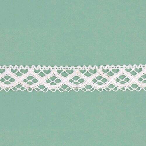 Renda em algodão, utilizada para artesanato, confecções, decoração e outros. Aceita tingimento.