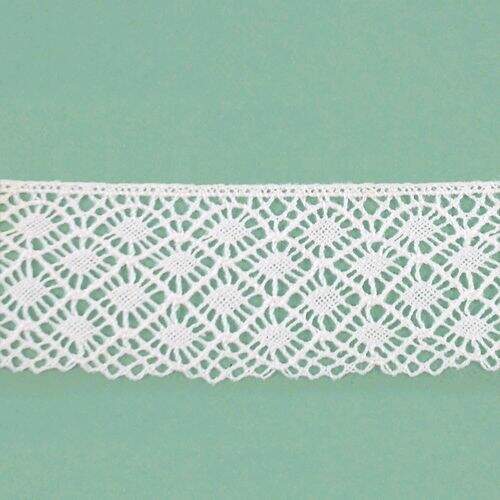 Renda em algodão, utilizada para artesanato, confecções, decoração e outros. Aceita tingimento.
