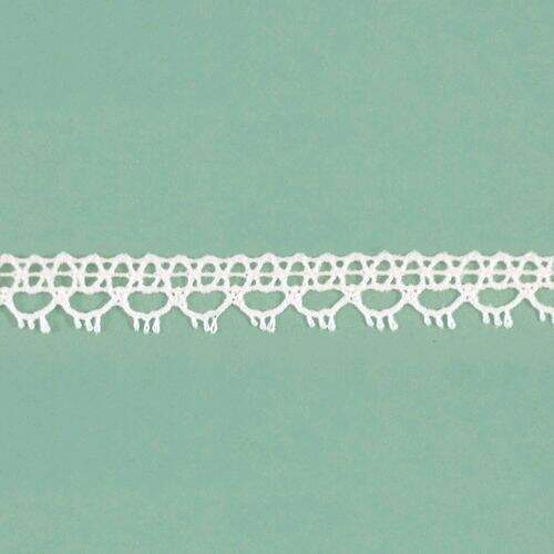 Renda em algodão, utilizada para artesanato, confecções, decoração e outros. Aceita tingimento.