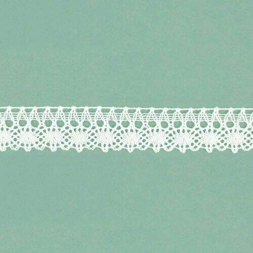 Renda em algodão, utilizada para artesanato, confecções, decoração e outros. Aceita tingimento.