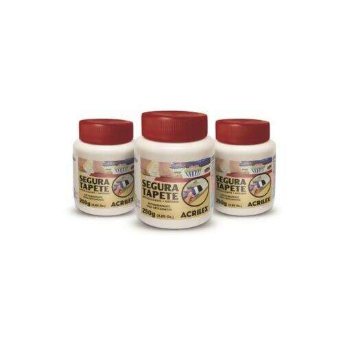Segura Tapete Acrilex 250g.Indicado para melhorar a aderência de tapetes no chão, evitando que o mesmo deslize no piso. Pode ser aplicado com pincel, esponja ou espátula em peças de algodão, barbante e crochê. Tapetes de tramas abertas aplicar com pincel ou esponja, batendo suavemente por toda extensão do tapete, evite excessos nas áreas vazadas da trama. Tapetes de tramas fechadas aplicar uma quantidade generosa e espalhar com uma espátula, deixando uma camada espessa. Em outros materiais, recomendamos teste prévio. Resistente a lavagens após 72 horas.