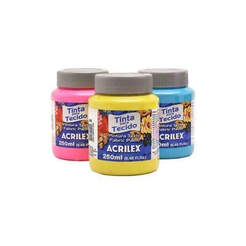 Tinta para Tecido Fosca Acrilex 250ml. A escolha perfeita para quem deseja customizar suas peças de tecido de forma fácil e prática. Para tecidos de algodão. Essa tinta é solúvel em água e não tóxica, o que garante uma aplicação segura e livre de complicações. Uma das grandes vantagens da Tinta para Tecido Fosca Acrilex é sua alta resistência a lavagens, que garante que suas criações permaneçam intactas mesmo após diversas lavagens. Além disso, todas as cores são miscíveis entre si, o que permite uma grande variedade de possibilidades na criação de novas tonalidades. Não utilizar em tecidos sintéticos ou engomados. Com acabamento fosco e pode ser usada também para tingir massa de biscuit.